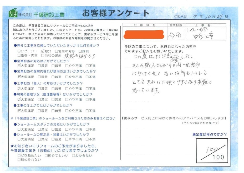さらに、トイレの仕上がりについてもご満足いただけたようで、「使いやすくきれいになった」
